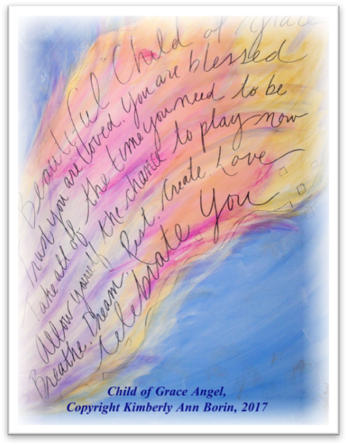 As I began working with the wings, I was aware of the many gifts of learning and the blessings that were emerging. As I painted, I felt a deep sense of peace as I saw how encouraging, hopeful, and loving angels and their wings could be. I learned how to use new tools, materials, and mediums. I learned how my yoga practice of movement, breath, strength and stretching helped for painting on large surfaces. Painting renewed my courage to take a leap of faith and to offer myself a fresh start. The light, color, inspiration, and beauty that continually emerged also felt like moments of grace.