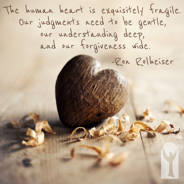 The human heart is exquisitely fragile. Our judgments need to be gentle, our understanding deep, and our forgiveness wide.